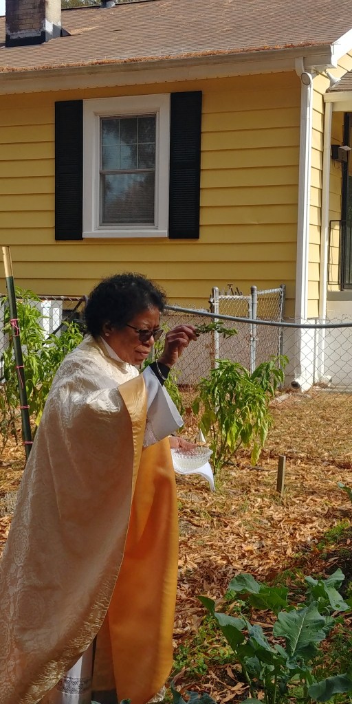 On Sunday, folks from the congregation gathered around the garden where Rev. Stephanie read a wonderful blessing and then sprinkled each of the beds with holy water. It was a wonderful thing to see everyone gathered in the garden together. We hope to see many more simple garden gatherings in the future!