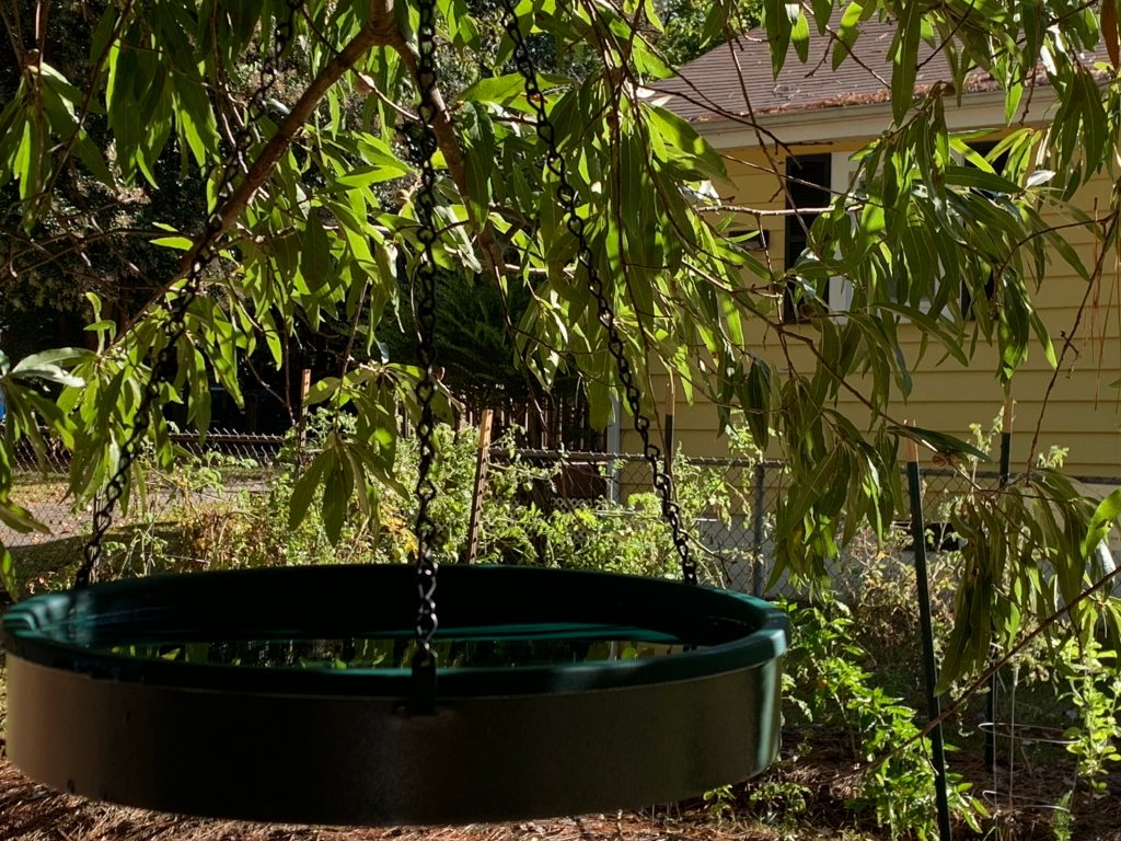 We have installed a bird feeder and bird bath under the willow oak. The birds are definitely visiting though we never get to see them. We know that they are coming because the feeder empties between visits and it is squirrel proof.