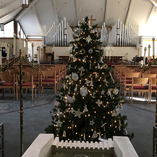 Chrismons (CHRISt MONogram) are symbols that proclaim the Name, the Life, and the saving Acts of Jesus Christ. All our Chrismons are made by hand, in combinations of white (purity and perfection) and gold (majesty and glory). Chrismons are now displayed at both Easter and Advent/Christmas.